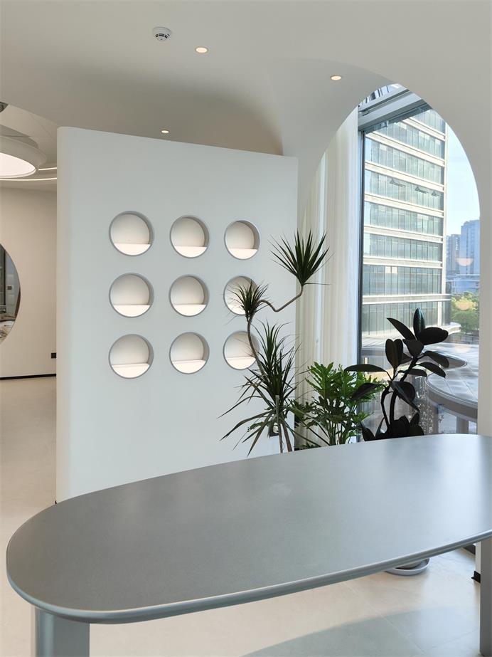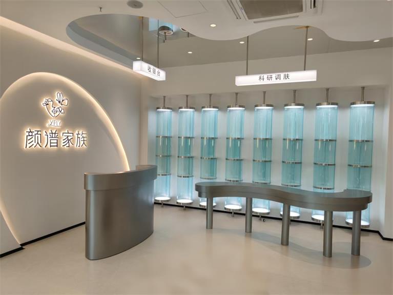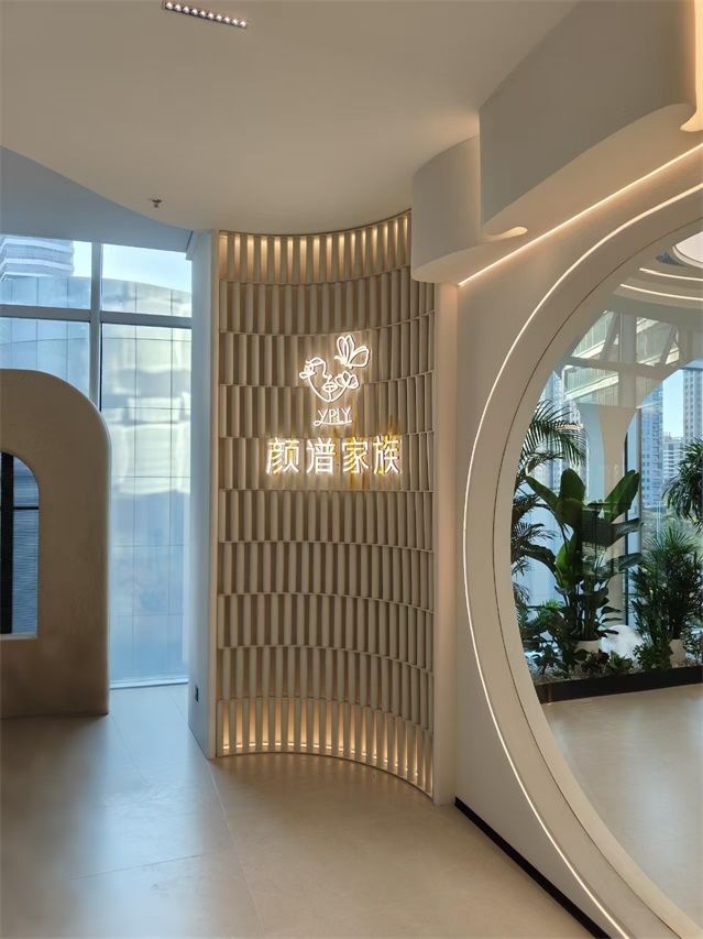 顏譜家族是瑞合集團推出的輕創(chuàng)業(yè)美業(yè)品牌,依托集團在美業(yè)的20年經(jīng)驗,通過“科技養(yǎng)膚+數(shù)字化運營”模式 為創(chuàng)業(yè)者提供低風(fēng)險、全流程支持的創(chuàng)業(yè)解決方案。 顏譜家族 白色弧形隔斷配九宮格圓龕,綠植與金屬桌碰撞,拱形窗框都市景,開啟藝術(shù)感美膚體驗序章。 弧形格柵暖光襯托發(fā)光品牌標識,圓形鏡面延伸空間,藝術(shù)化傳遞品牌柔美專業(yè)屬性。 木質(zhì)背景配黑色畫框,專利證書陣列成墻,直觀展現(xiàn)品牌科研實力與專業(yè)可信度。 藍白洽談區(qū)弧形吊頂柔光,落地窗引自然光與城景,營造信任松弛的溝通氛圍。 對稱弧形陳列架如雙翼,漸變藍玻璃柱點綴,圓形燈幕與金屬錐打造藝術(shù)化產(chǎn)品殿堂。  |